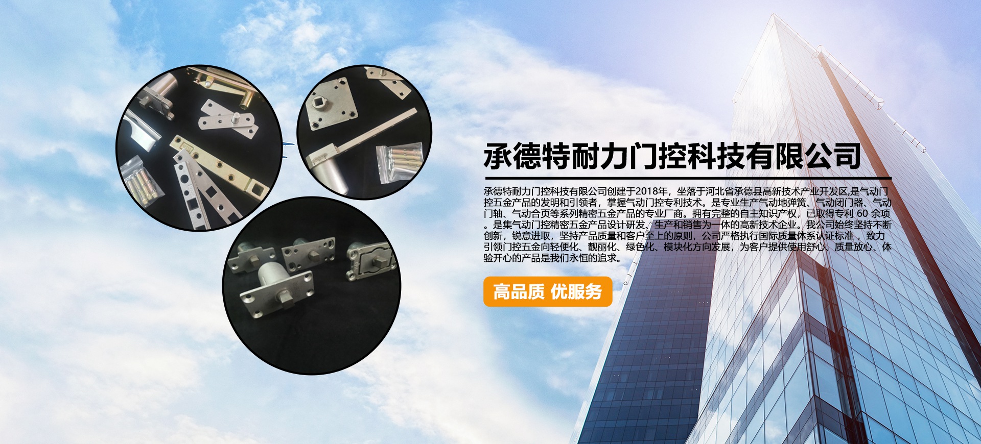 鎵垮痙鐗硅愬姏闂ㄦ帶縐戞妧鏈夐檺鍏徃鍒涘緩浜?018騫達紝鍧愯惤浜庢渤鍖楃渷鎵垮痙鍘塊珮鏂版妧鏈駭涓氬紑鍙戝尯,鏄皵鍔ㄩ棬鎺т簲閲戜駭鍝佺殑鍙戞槑鍜屽紩棰嗚咃紝鎺屾彙姘斿姩闂ㄦ帶涓撳埄鎶鏈傛槸涓撲笟鐢熶駭姘斿姩鍦板脊綈с佹皵鍔ㄩ棴闂ㄥ櫒銆佹皵鍔ㄩ棬杞淬佹皵鍔ㄥ悎欏電瓑緋誨垪綺懼瘑浜旈噾浜у搧鐨勪笓涓氬巶鍟嗐傛嫢鏈夊畬鏁寸殑鑷富鐭ヨ瘑浜ф潈錛屽凡鍙栧緱涓撳埄 60 浣欓」銆傛槸闆嗘皵鍔ㄩ棬鎺х簿瀵嗕簲閲戜駭鍝佽璁$爺鍙戙佺敓浜у拰閿鍞負涓浣撶殑楂樻柊鎶鏈紒涓氥傛垜鍏徃濮嬬粓鍧氭寔涓嶆柇鍒涙柊錛岄攼鎰忚繘鍙栵紝鍧氭寔浜у搧璐ㄩ噺鍜屽鎴瘋嚦涓婄殑鍘熷垯錛屽叕鍙鎬弗鏍兼墽琛屽浗闄呰川閲忎綋緋昏璇佹爣鍑?nbsp;錛岃嚧鍔涘紩棰嗛棬鎺т簲閲戝悜杞諱究鍖栥侀潛涓藉寲銆佺豢鑹插寲銆佹ā鍧楀寲鏂瑰悜鍙戝睍錛屼負瀹㈡埛鎻愪緵浣跨敤鑸掑績銆佽川閲忔斁蹇冦佷綋楠屽紑蹇冪殑浜у搧鏄垜浠案鎭掔殑榪芥眰銆?br/>